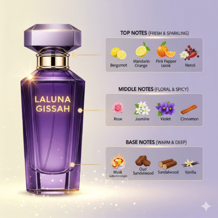 A star-inspired oud fragrance with floral freshness, deep spice, and lasting amber warmth.
