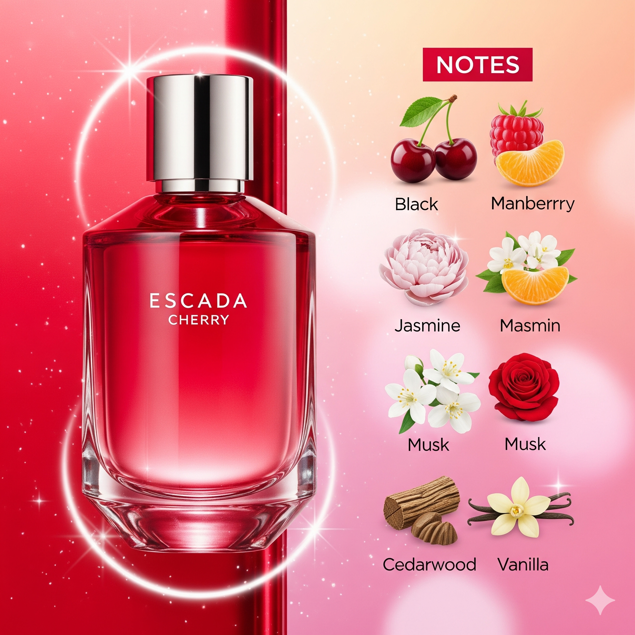 Escada Cherry – A fresh and playful fruity fragrance, exuding joy, elegance, and long-lasting charm.